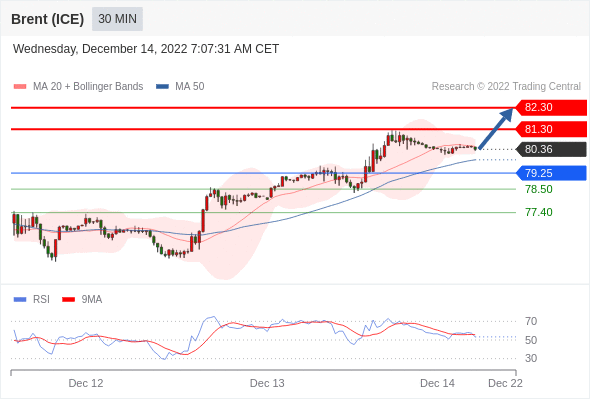 在 79.25 之上,看涨,目标价位为 81.30 ,然后为 82.30 。