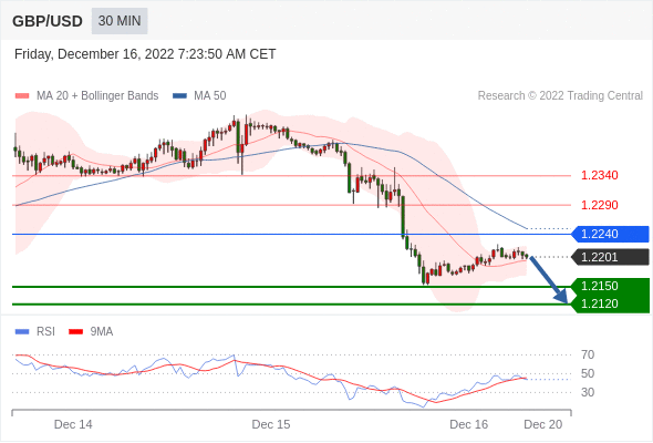 在 1.2240 之下,看跌,目标价位为 1.2150 ,然后为 1.2120 。