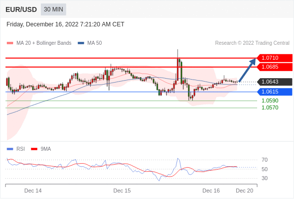 在 1.0615 之上,看涨,目标价位为 1.0685 ,然后为 1.0710 。