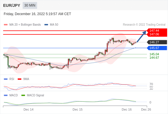 欧元/日元 当日内: 看涨,当 145.67 为支撑位,目标定在147.44。