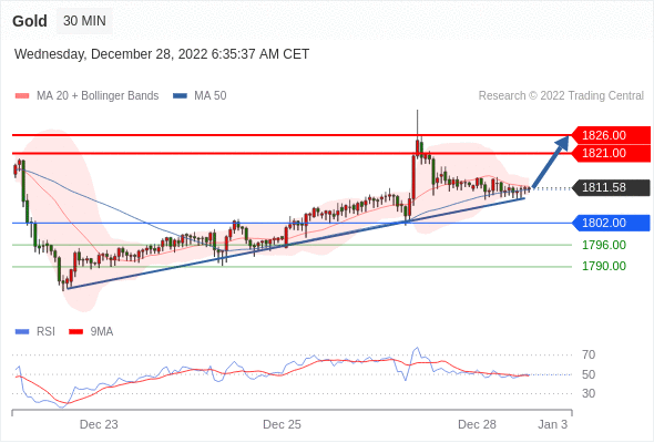 在 1802.00 之上,看涨,目标价位为 1821.00 ,然后为 1826.00 。