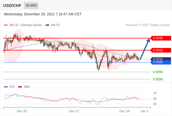 在 0.9285 之上,看涨,目标价位为 0.9310 ,然后为 0.9335 。
