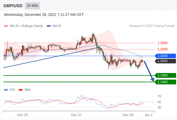 在 1.2040 之下,看跌,目标价位为 1.1980 ,然后为 1.1960 。