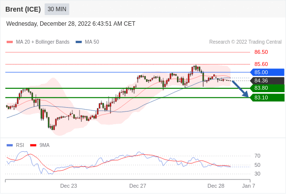 在 85.00 之下,看跌,目标价位为 83.80 ,然后为 83.10 。