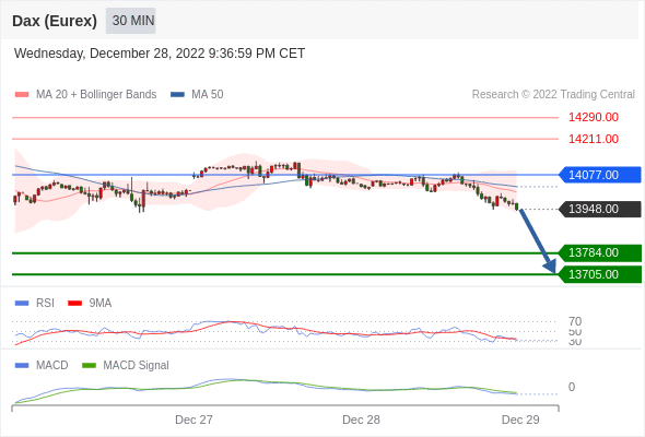 德国DAX指数期货 (Eurex)? 当日内: 看跌,在 14077.00 之下。