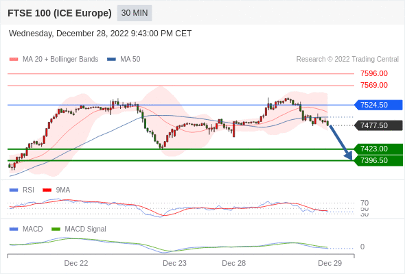 英国富时100指数期货 当日内: 看跌,在 7524.50 之下。