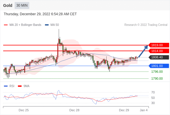 在 1801.00 之上,看涨,目标价位为 1814.00 ,然后为 1819.00 。