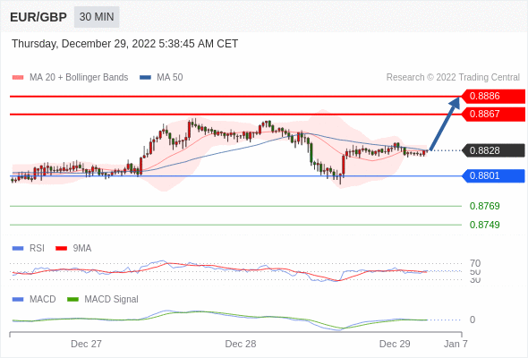 欧元/英镑 当日内: 调整至 0.8801 处,在反弹上升之前。