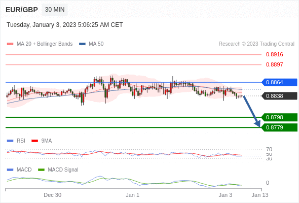 欧元/英镑 当日内: 看跌,在 0.8864 之下。