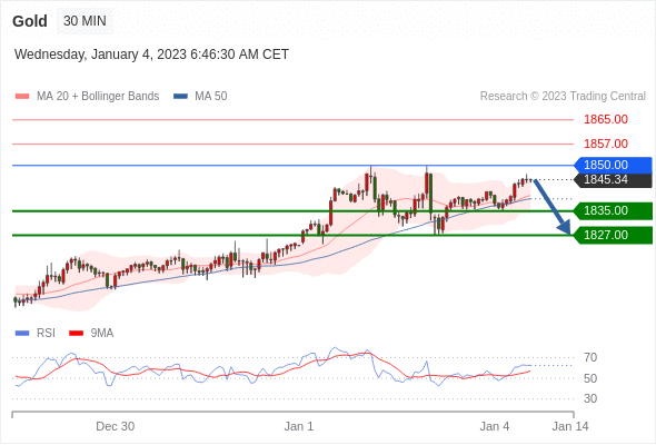 在 1850.00 上,看涨,目标价位定在 1857.00 ,然后为 1865.00。
