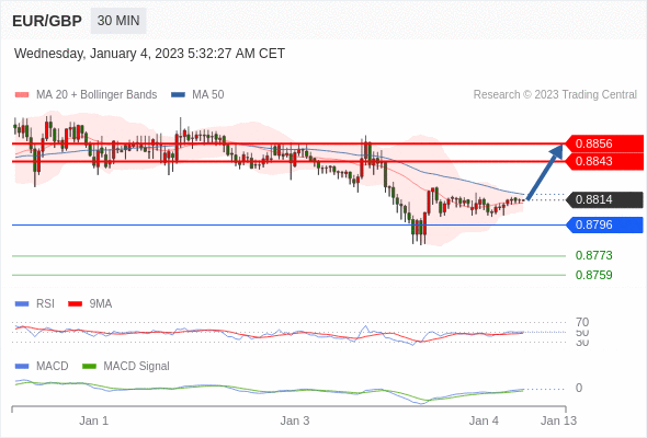 欧元/英镑 当日内: 看涨。