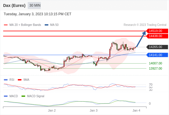 德国DAX指数期货 (Eurex)? 当日内: 看涨,当 14141.00 为支撑位,目标定在14519.00。