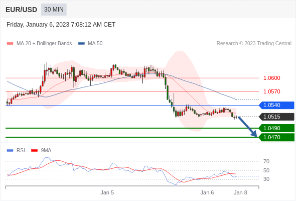 在 1.0540 之下,看跌,目标价位为 1.0490 ,然后为 1.0470 。