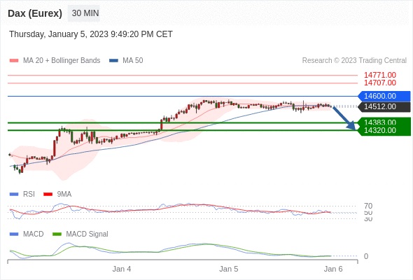 德国DAX指数期货 (Eurex)? 当日内: 当 14600.00 维持阻力位时,存在回归 14320.00 的风险。
