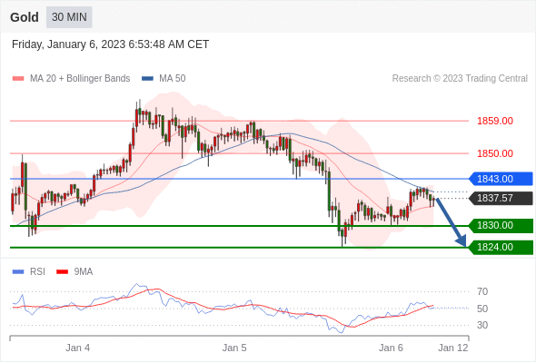 在 1843.00 之下,看跌,目标价位为 1830.00 ,然后为 1824.00 。