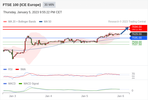 如跌破 7595 ,英国富时100指数期货 目标方向定在 7559 和 7537.50 。