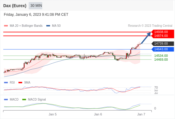 德国DAX指数期货 (Eurex)? 当日内: 看涨,当 14643.00 为支撑位。