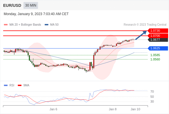 在 1.0625 之上,看涨,目标价位为 1.0700 ,然后为 1.0730 。