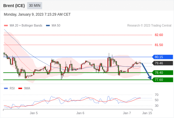 在 80.15 之下,看跌,目标价位为 78.40 ,然后为 77.60 。
