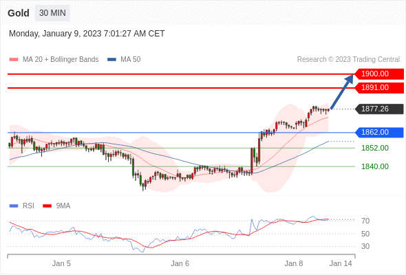 在 1862.00 之上,看涨,目标价位为 1891.00 ,然后为 1900.00 。