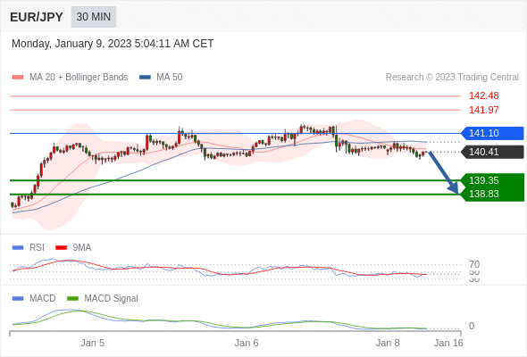 欧元/日元 当日内: 看跌,在 141.10 之下。