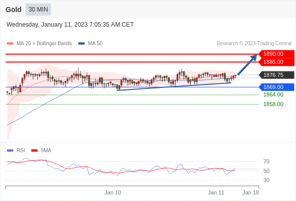 在 1869.00 之上,看涨,目标价位为 1885.00 ,然后为 1890.00 。