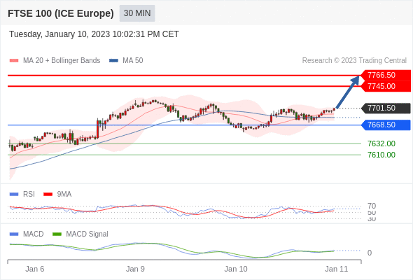 英国富时100指数期货 当日内: 看涨,当 7668.50 为支撑位。