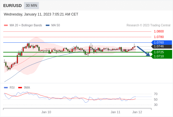 在 1.0760 之下,看跌,目标价位为 1.0725 ,然后为 1.0710 。
