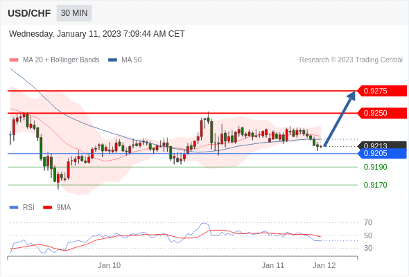 在 0.9205 之上,看涨,目标价位为 0.9250 ,然后为 0.9275 。