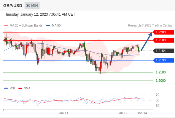 在 1.2130 之上,看涨,目标价位为 1.2180 ,然后为 1.2200 。