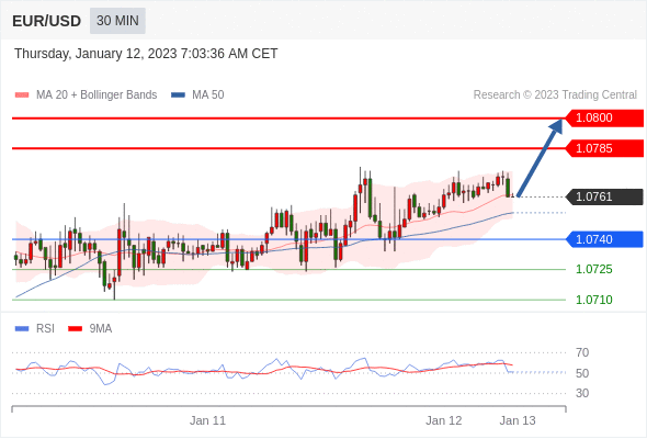 在 1.0740 之上,看涨,目标价位为 1.0785 ,然后为 1.0800 。