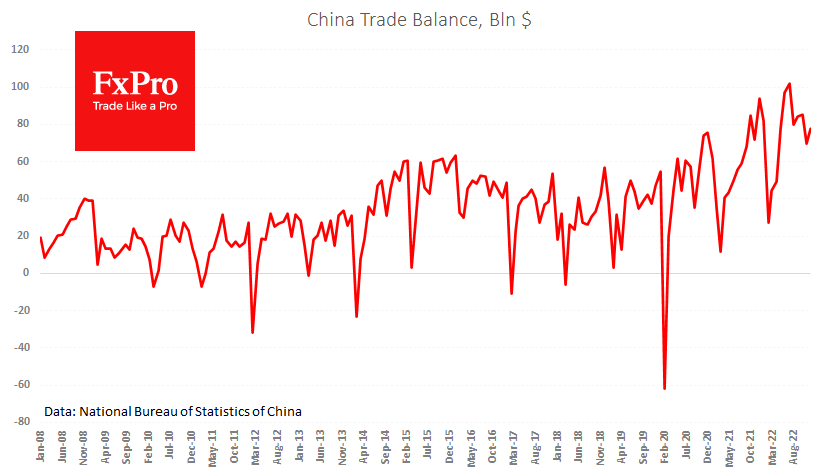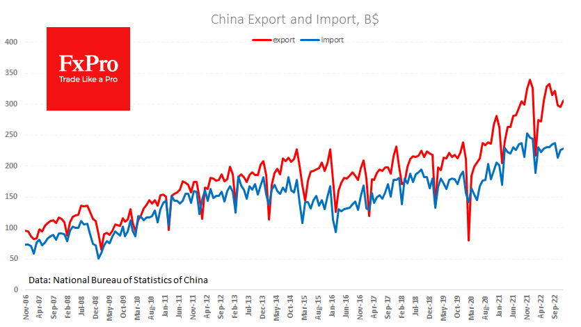 FxPro高级分析师Alex?Kuptsikevich指出:该数据略高于预期,但总体显示 2022 年对外贸易活动停滞不前,让人想起 2014 年和 2015 年,这对中国来说是艰难的年份。