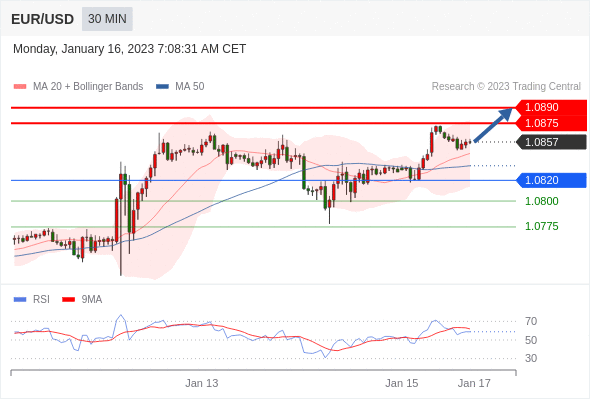 在 1.0820 之上,看涨,目标价位为 1.0875 ,然后为 1.0890 。