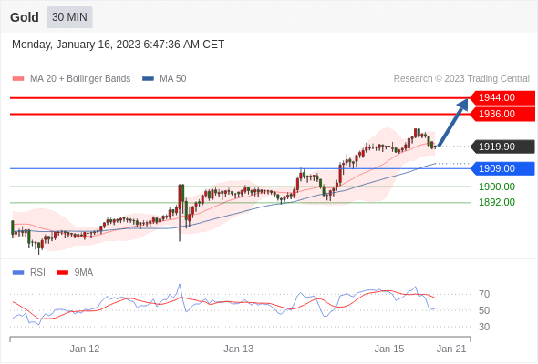 在 1909.00 之上,看涨,目标价位为 1936.00 ,然后为 1944.00 。