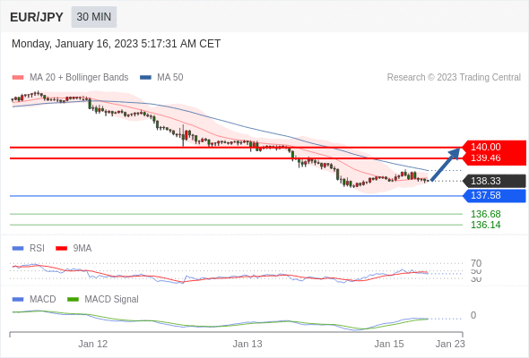 欧元/日元 当日内: 有上涨的可能,目标价位定在 140.00 。