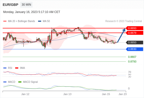 欧元/英镑 当日内: 有上涨的可能,目标价位定在 0.8893 。