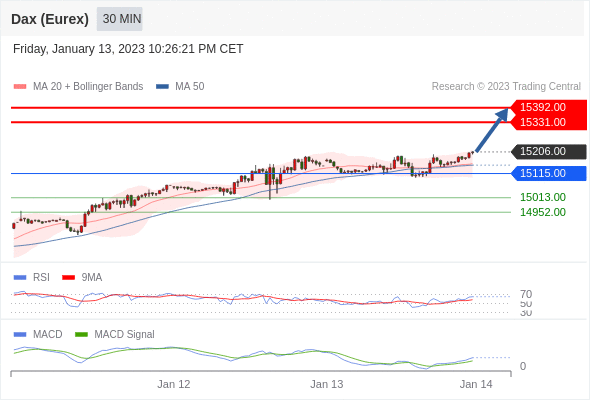 如跌破 15115 ,德国DAX指数期货 (Eurex) 目标方向定在 15013 和 14952 。