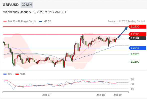 在 1.2245 之上,看涨,目标价位为 1.2300 ,然后为 1.2330 。
