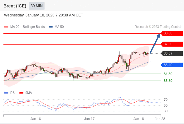 在 85.40 之上,看涨,目标价位为 87.50 ,然后为 88.60 。