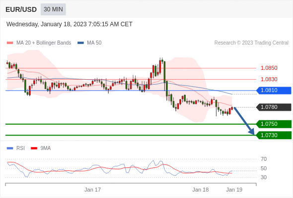 在 1.0810 之下,看跌,目标价位为 1.0750 ,然后为 1.0730 。