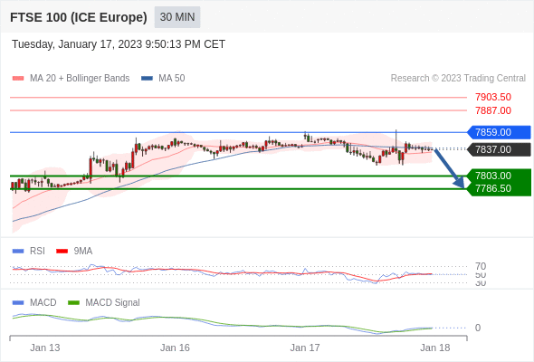 英国富时100指数期货 当日内: 在进一步下跌之前,反弹至 7859.00 附近。
