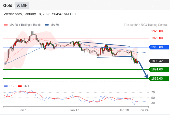 在 1913.00 之下,看跌,目标价位为 1891.00 ,然后为 1882.00 。