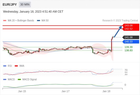 欧元/日元 当日内: 看涨,当 140.33 为支撑位。