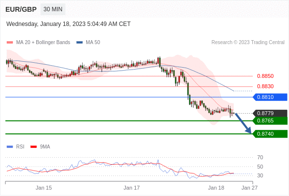 在 0.8810 之下,看跌,目标价位为 0.8765 ,然后为 0.8740 。