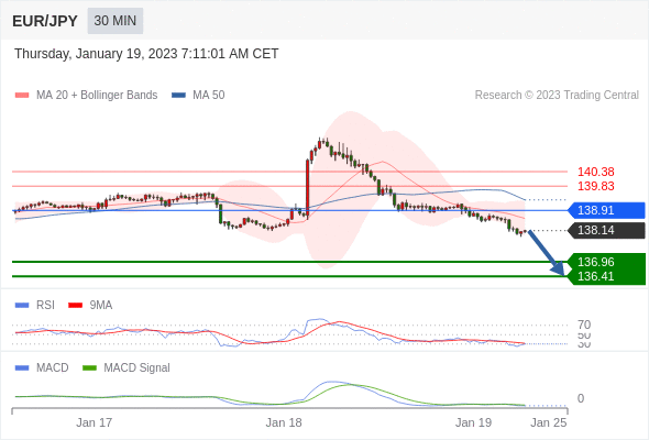 欧元/日元 当日内: 看跌,在 138.91 之下。