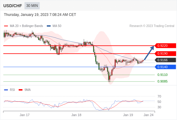 在 0.9140 之上,看涨,目标价位为 0.9190 ,然后为 0.9220 。