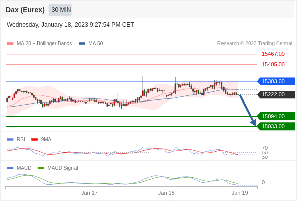 德国DAX指数期货 (Eurex)? 当日内: 看跌,在 15303.00 之下。