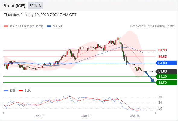 在 84.80 之下,看跌,目标价位为 83.20 ,然后为 82.50 。