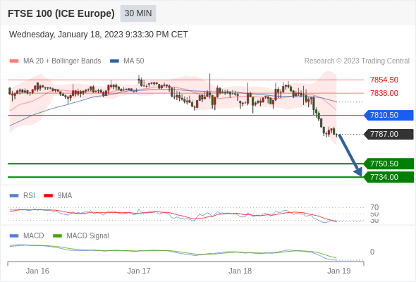 英国富时100指数期货 当日内: 看跌,在 7810.50 之下。