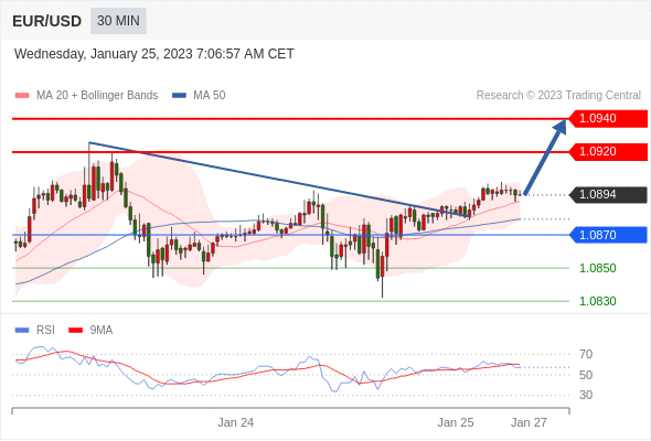 在 1.0870 之上,看涨,目标价位为 1.0920 ,然后为 1.0940 。